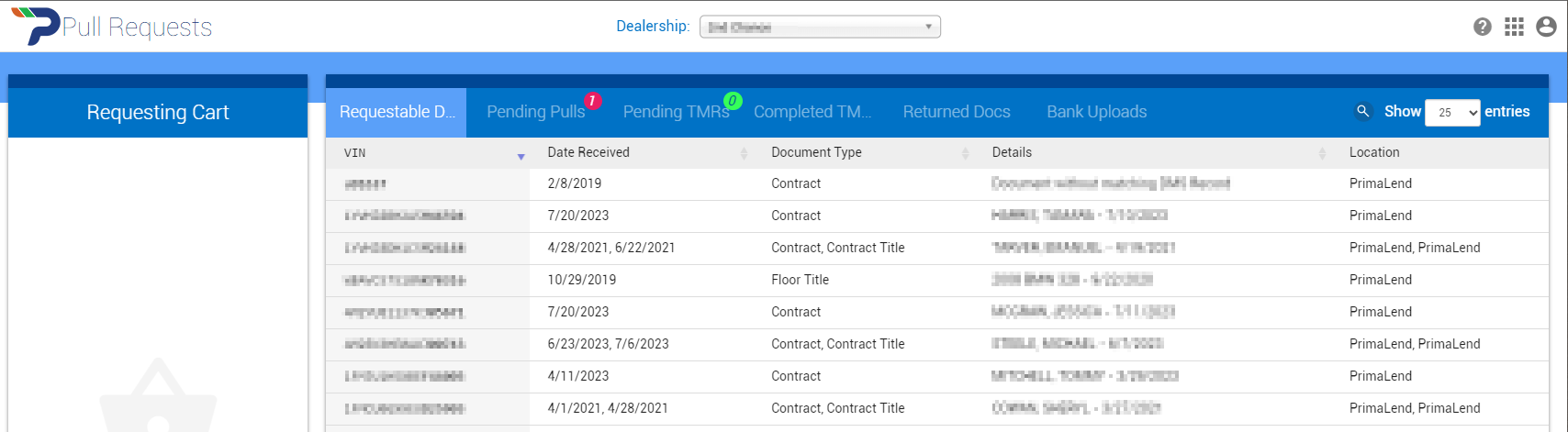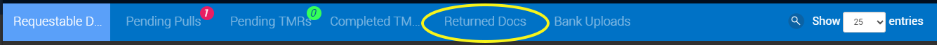 Once pull requests have been completed, the collateral can be found in the Returned Docs tab.