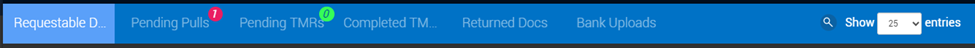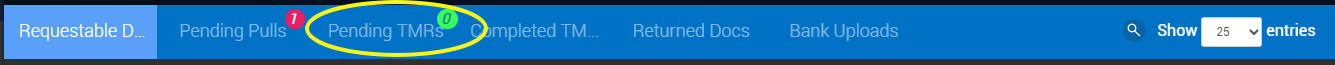 Once you have submitted TMR requests, they can be found on the Pending TMRs tab. The functionality of the table when you're on this tab is the same as the Pending Pulls.