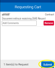 This is your Requesting Cart; you can think of it just like an online shopping cart. You can queue up as many documents to request as you want. You can add comments to each of the requests when they are in your cart. When you're finished make sure to click the submit button at the bottom. * If you do not click this button none of your request will be submitted. *