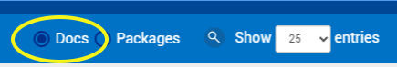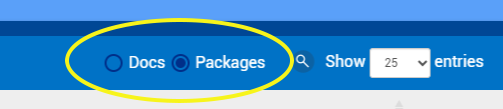 The Docs/Packages buttons will change the view style of the table. When in 'Packages' mode you can click on a row to see the content of the package. This modal shows the contents of the package.