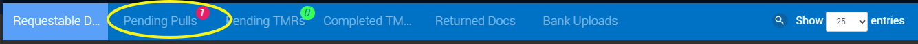 Once you have submitted pull requests, they can be found on the Pending Pulls tab. You can click the Printer Icon at the bottom of the page to print the contents of the Pending Pulls table.