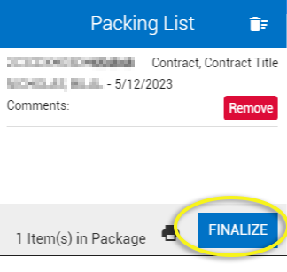 The Packing List works similarly to the Requesting Cart. Add all the documents you're going to put in a package here. * Make sure to click FINALIZE when you are finished. *